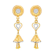 A sophisticated pair of gold earrings in 18K Yellow Gold and White Rhodium plating. Set yourself apart from the party crowd with this sleek yet stunning rhodium plated gold earrings.